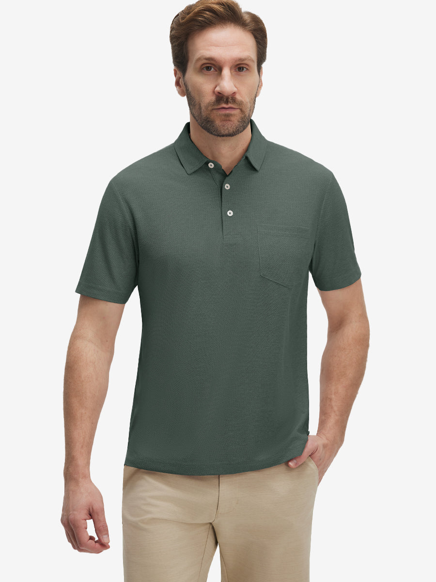 Moisture Wicking Heather Chest Pocket Golf Shirts