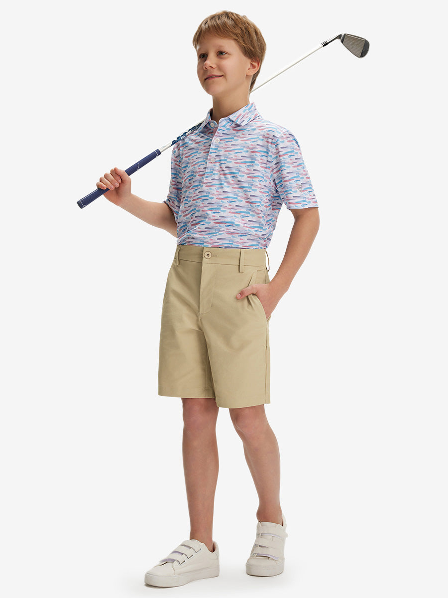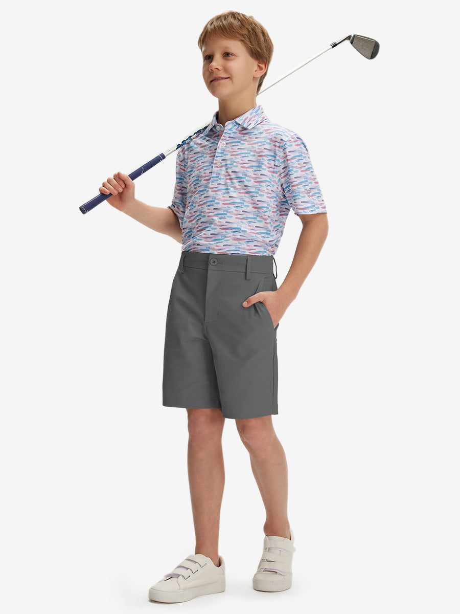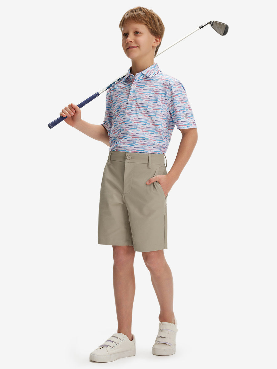 Pantalones cortos de golf de frente plano y secado rápido para niños