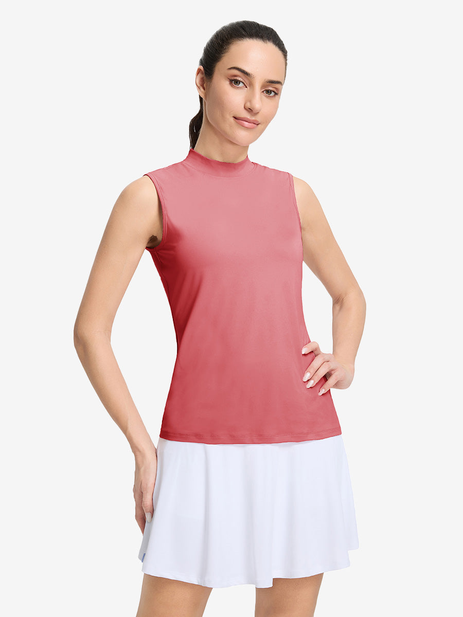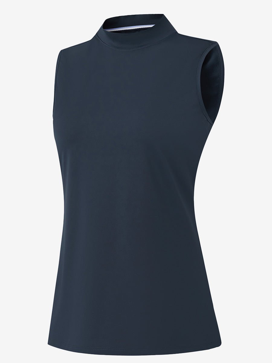 Tops de golf sin mangas con cuello simulado y tecnología de absorción de humedad para mujer