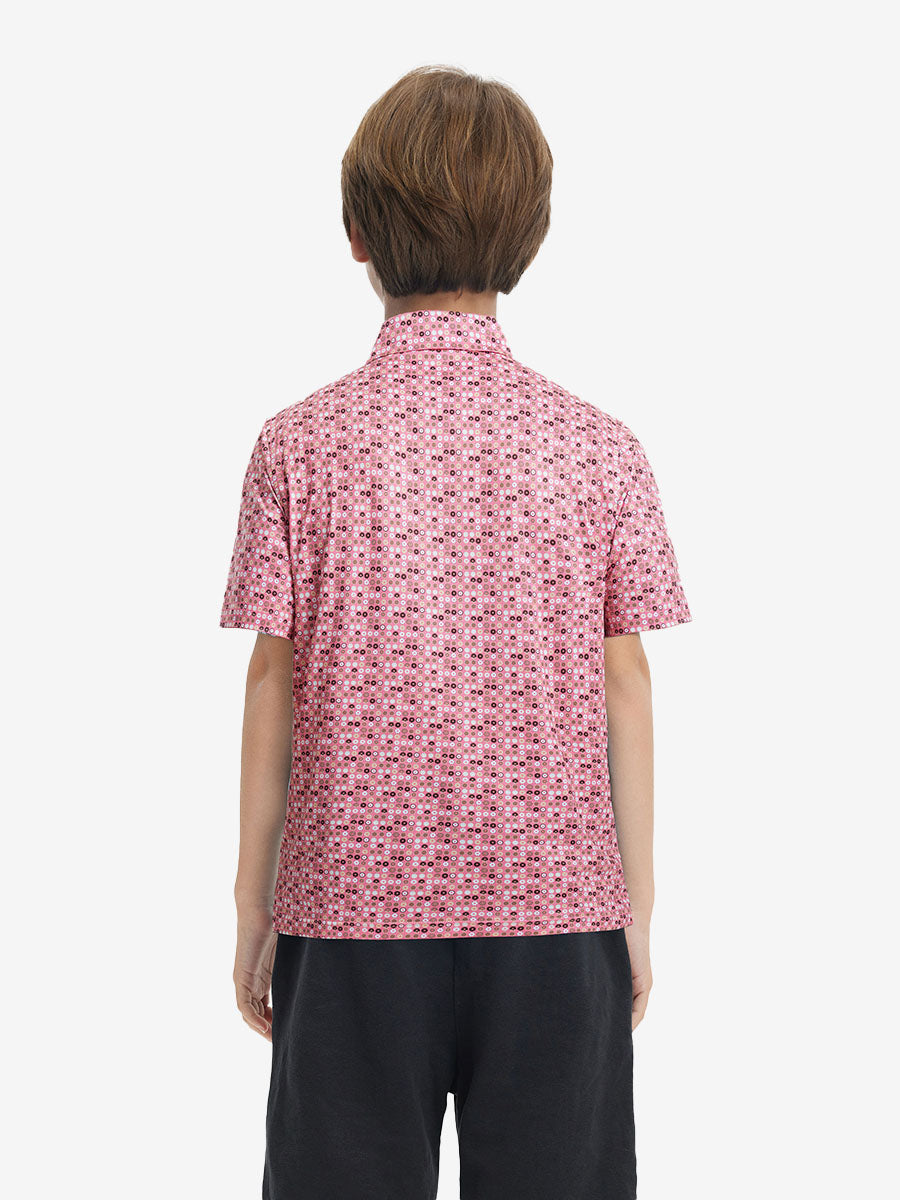 Get your little golfer ready for adventures with our 'Stylish Print Boys Polo Shirts'. Crafted from top-notch fabric that wicks moisture, stays light, and shields with UPF 50+. Let him swing freely with the split hem and stretchy fabric. Watch him rock the course in fun animal and plant prints that never fade, making him the cutest golfer around!