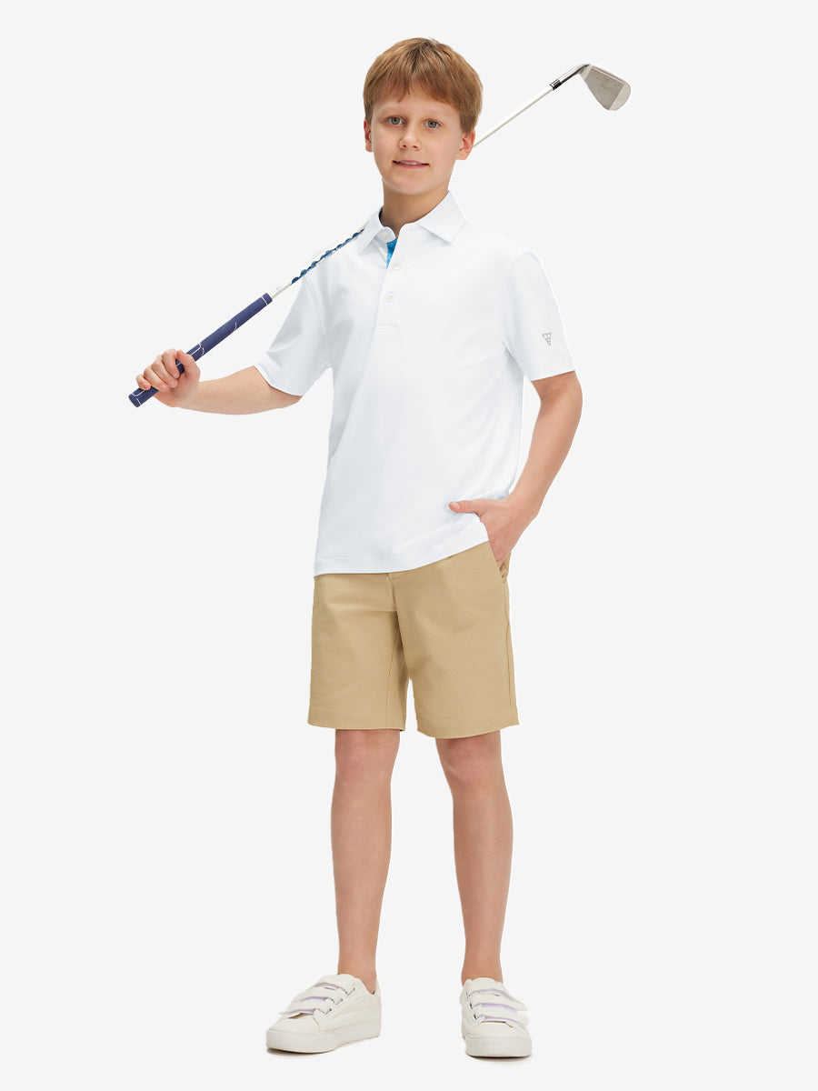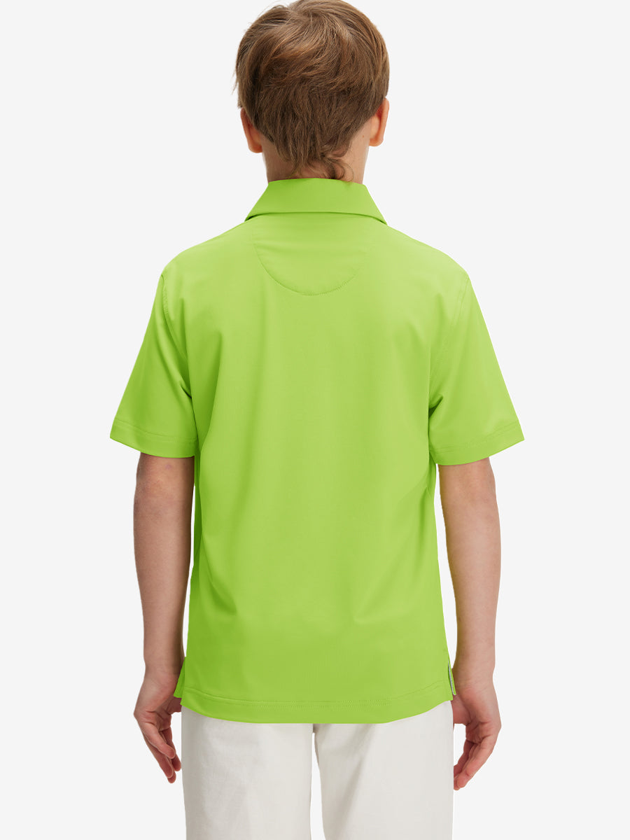 Keep your active boy cool and comfy in Boys Quick Dry Fit Athletic Solid Polo Shirts! Made with lightweight, breathable fabric that wicks moisture and dries fast—plus UPF 50+ sun protection. The soft, 4-way stretch material and split hem ensure total freedom of movement, while the classic 3-button placket and subtle contrast print inside collar add a cute, polished touch. Durable stitching and a regular fit make it perfect for sports, school, or play—all day long!