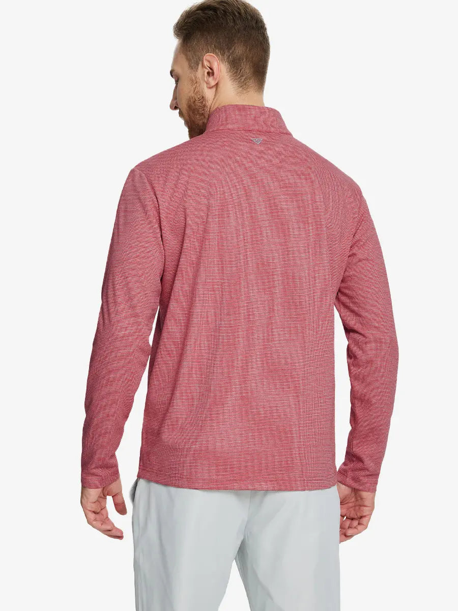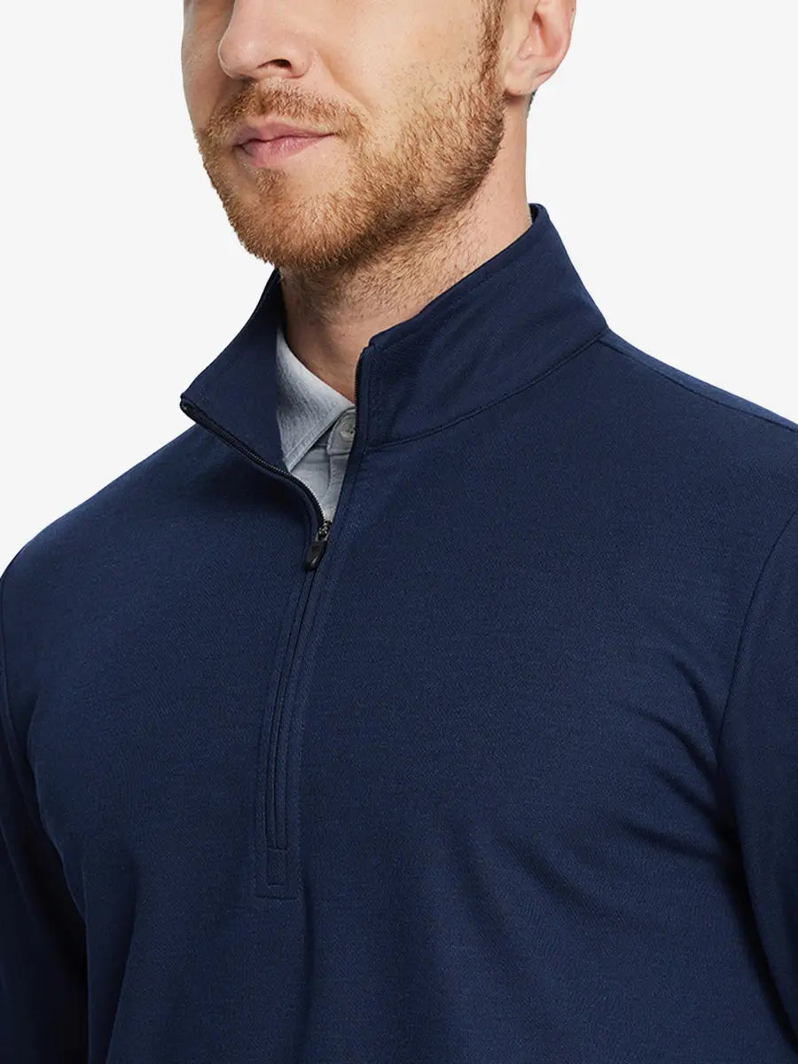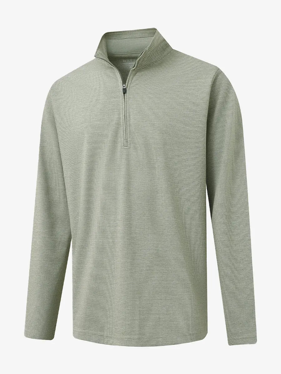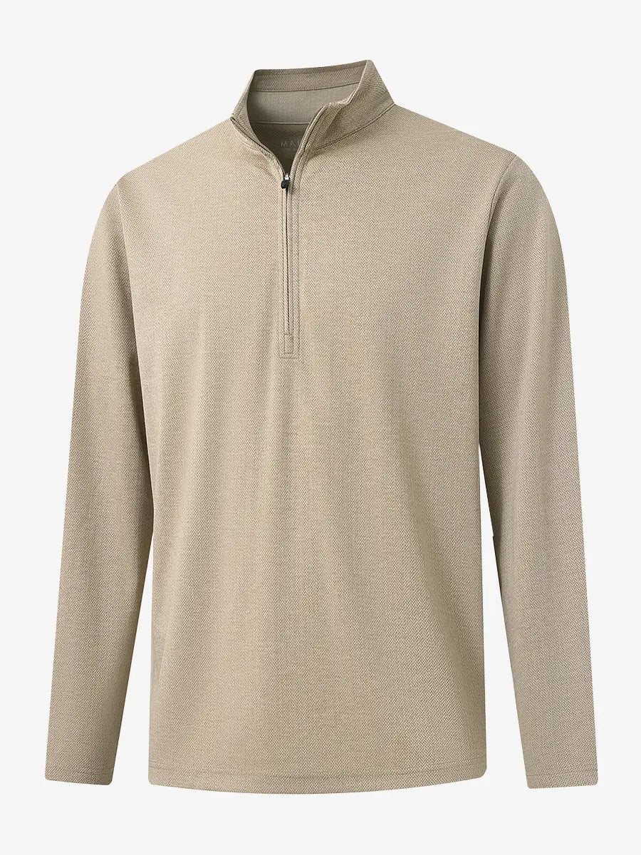 Experience ultimate comfort and style with our Premium Jacquard Quarter Zip Pullover. Crafted from performance herringbone fabric, it offers dry fit technology and UPF 30+ protection. This men's sweatshirt is ideal for staying warm in cold weather and perfect for layering in autumn and winter. The elaborately developed fabric ensures wear-resistance and durability, while maintaining a slight stretch for ease of movement. With meticulous stitching and exquisite details, this pullover is a perfect blend of quality and functionality.