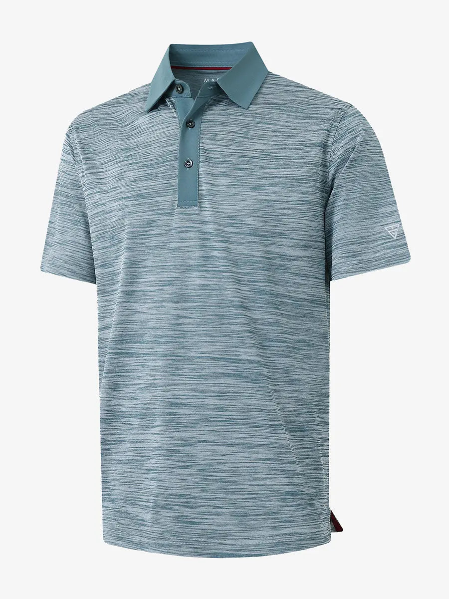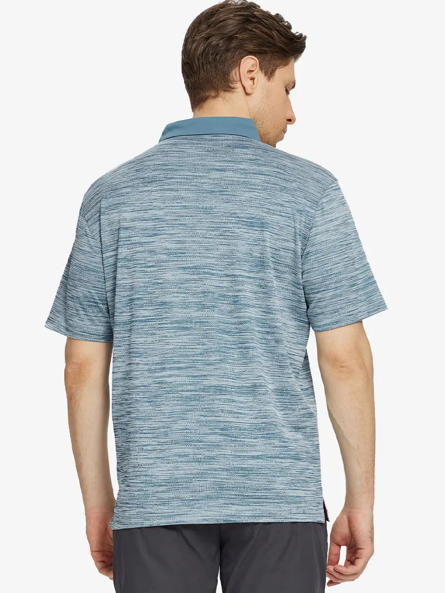 Step up your style with the "Cool Heather Texture Polo." Versatile and easy to match, this men's casual shirt is perfect for various occasions. Crafted from pique fabric with a solid collar and placket, it exudes visual elegance and style. Featuring dry-fit technology, UPF50+ protection, softness, and 4-way stretch, this golf shirt keeps you comfortable, cool, and breathable while ensuring excellent mobility in all directions.